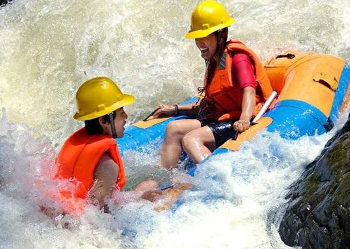 清遠筆架山峽谷漂流的一個特別之處是一年四季都可漂。原因是筆架山的漂流河建設(shè)有水源控制壩,它可以通過對水源的控制,保證山間突發(fā)洪時的漂流安全,并保證枯水季節(jié)漂流的適量水位。安全是漂流游人最關(guān)心的,筆架山的峽谷漂流在漂流全程的每一個驚險點,都安排有安全員守點,以幫助游人順利過灘。 筆架山峽谷漂流分兩段,上游是勇士漂,下游為逍遙漂,采用的漂流船都是2人橡皮艇。逍遙漂全長6公里,需時約2個小時,這段河道的狀態(tài)較為和緩,落差一般在1米以下,正常水深40-50公分,各種灘跌洄潭,均在大眾能夠接受的范圍內(nèi),適合各種年齡層次的人玩。不過,逍遙漂也有幾處險灘,都是有驚無險的。兩岸青山綠水,在逍遙中一邊享受愜意的漂流感覺,一邊自由自在地欣賞溪河美景,流連于碧水青山、綠蔭白瀑之間。玩逍遙漂只需穿帶救生衣。而參加勇士漂就驚險得多了。