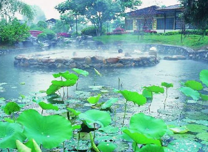 清新溫礦泉旅游渡假區(qū)內(nèi)的"河中溫泉",因建筑在"金泉河"河床之上而得名。溫泉水質(zhì)清澈透明,可飲可浴。溫泉區(qū)內(nèi)68個風(fēng)格各異的溫泉池,日出量水高達11000立方米,濃縮了東方園林藝術(shù)的精華,把亞洲溫泉的古樸浪s漫與日式風(fēng)呂、東南亞風(fēng)情巧妙地融為一體,泡溫泉意境也由此而生。