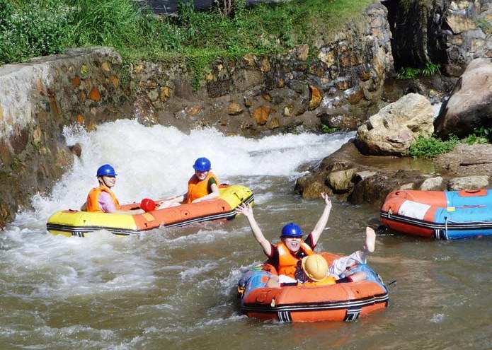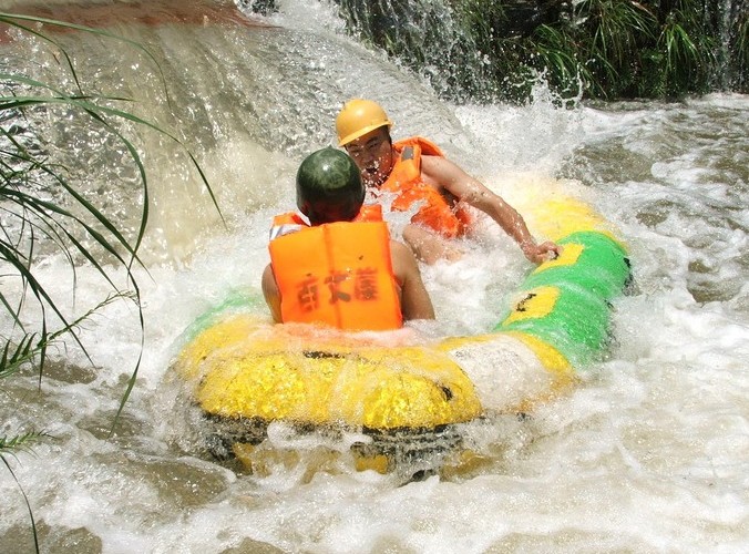 立于灘頭,沿江兩岸有大瑤山隧道、十里畫廊、龜山、蛙石等景點(diǎn),有十多個回旋處。在漂流過程中,可盡享原始森林峽谷漂流之刺激,更可欣賞融山之雄、水之秀、林之幽、花之美、石之奇、瀑之壯、鳥之鳴、魚之樂于一身的原始森林山谷風(fēng)光。