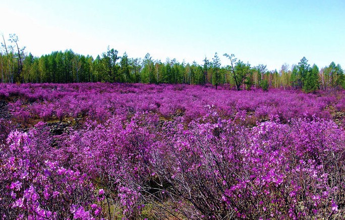 興安杜鵑林沿“林海石瀑”圍成一周。版權所有山東聊城聊之旅國際旅行社有限公司,轉載必究!每值五月中旬,姹紫嫣紅的興安杜鵑襯著尚未完全消融的皚皚白雪,在沉睡九萬多年的玄武巖上怒放。紅色杜鵑花和白色的積雪交相輝映,錯落有致地分布著,苑若仙境。所以,這里也稱"杜鵑花山谷"。每年的興安杜鵑節,這里都有欣賞興安杜鵑的活動。