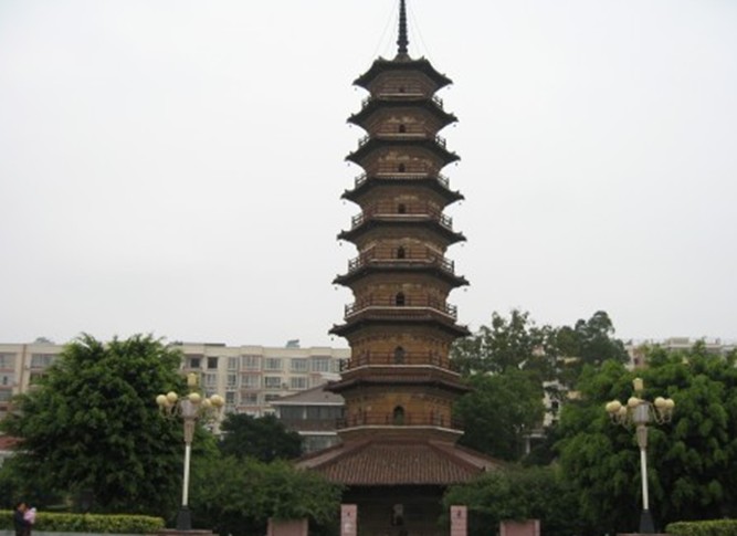 三影塔位于南雄市區(qū)永康路,建于北宋大中祥符二年(公元1009年),明代正統(tǒng)十一年(公元1446年)重修過。三影塔被列為全國重點(diǎn)文物保護(hù)單位。三影塔原名延祥寺塔,是延祥寺的一座建筑物,是廣東省僅有的有絕對年份可考的北宋早期磚塔。在光滑如鏡的寺壁上,竟然可以反射出三個塔影,一影向上,兩影倒懸,所以延祥寺塔被稱為三影塔。延祥寺內(nèi)的一間廳堂也被稱為“三影堂”。
