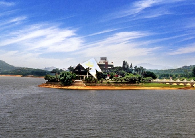 石巖湖溫泉度假村,位于深圳市中心西北40公里的石巖湖畔,占地3.9平方公里,其中水面2.4平方公里,綠化面積為1.2平方公里,建筑面積為4.5平方米,以獨具特色的天然玉律溫泉而聞名,其古樸典雅的西班牙建筑群綿延如帶,各種抽象派雕塑點綴其間,環境清靜悅目。