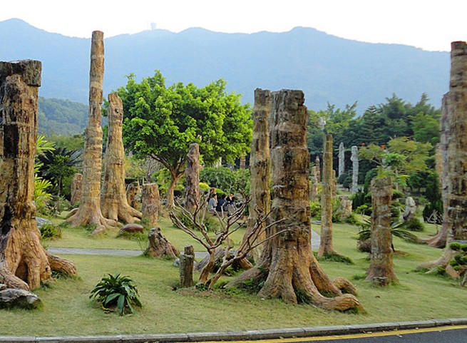深圳仙湖化石森林籌建于1997年,占地30多畝,由400多株木化石聳立形成化石森林景觀。這些木化石主要從遼寧、新疆、內蒙古等地引進。木化石又稱硅化木,是石化了的樹木枝干化石。在距今一億五千萬年前的中生代侏羅紀,由于地殼運動或火山爆發,古代森林瞬間被泥沙碎石或火山熔巖所掩埋,樹木中的有機質逐漸為二氧化硅所取代,形成了與石頭一樣的硅化木。