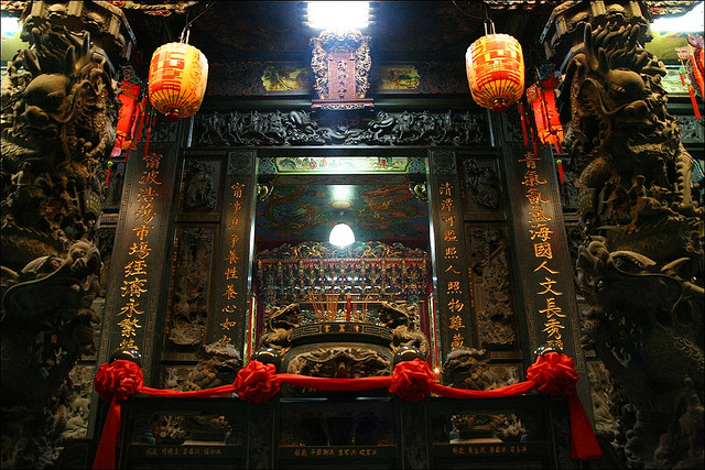 再內為大雄寶殿,供奉釋迦牟尼佛,該殿占地頗廣,因而三十燭光的燈泡更顯出洞內的幽暗,但暗并不妨礙行者的修行,正如殿上的喝語:仙自燦爛展臺稱,洞常幽暗境常清,一顆明星在暗夜中更顯出其明亮,而佛菩薩更能在紛擾熙攘的環境中求得一片凈土,因而所處雖紛亂、晦暗,卻能保有一顆澄明、平常的心。寶殿右側為地藏殿,供奉地藏王菩薩,為生靈開覺路;左側,供奉民間傳說的八仙,更為仙洞巖加上神話色彩。由于石洞天成,且為海蝕,經過長時間的侵蝕后,洞內時而有水滴穿流而下;高搬觸石壁,腐蝕的壁巖屑隨著手指的觸摸而沾滿,心頭一驚,心想,這風化的石壁不知經過了多久時間的摧殘才形成?若再一直風化下去,仙洞巖不知能再在宇宙間存在多少時日?叉百多少有緣人能及時一會?