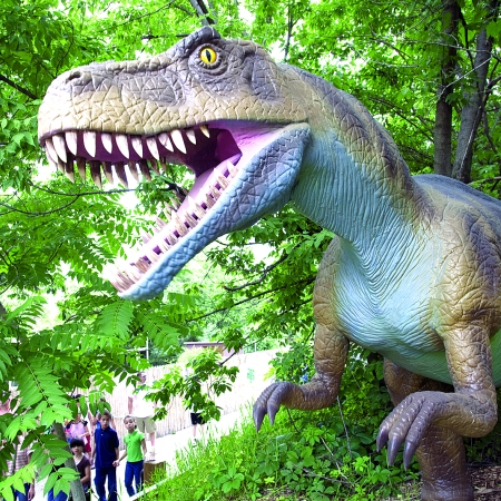金鷺公司在鴕鳥養(yǎng)殖的基礎(chǔ)上,利用鴕鳥群這一獨特的景觀和鴕鳥較高的觀賞價值,開發(fā)了生態(tài)旅游業(yè),1999年12月被河南省旅游局正式批準為“金鷺鴕鳥游樂園”旅游觀光景點, 2000年4月正式對游客開放。聊城旅游網(wǎng)版權(quán)所有聊城聊之旅國際旅行社有限公司,轉(zhuǎn)載必究!走出了一條“以鴕鳥養(yǎng)殖帶動旅游開發(fā),以旅游開發(fā)帶動產(chǎn)品銷售”的新路子,園區(qū)先后投資興建了騎鳥場、踩蛋場、太空球、垂釣中心、滑草場、空中索道、人工湖、水上樂園、攀巖、彩彈射擊、峽谷漂流等200多個特色旅游娛樂項目。金鷺鴕鳥游樂園和北美最知名的恐龍展覽公司加拿大恐龍皇有限責任公司投資500萬美元興建了我國最大的恐龍科普基地。恐龍科普基地占地百余畝,位于鴕鳥園內(nèi), 40多只恐龍是根據(jù)已發(fā)現(xiàn)的恐龍化石,按原始大小仿真制造。這些形態(tài)各異、或兇猛或溫柔的仿真恐龍會動會叫會呼吸,皮膚柔軟,肢體靈活,如同復活一般,栩栩如生地潛伏在鴕鳥園茂盛的樹叢中和水塘內(nèi),有的張牙舞爪,有的低沉吼叫,有的正在下蛋,有的噴水嬉戲。妙趣橫生的恐龍?zhí)矫刂靡欢〞屇錆M驚奇與收獲,逼真的場景也會帶您穿越時空,夢幻般回到億萬年前的侏羅紀時代。
