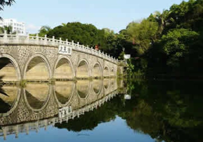 百尺長虹橫雪痕,半輪蛟月鎖寒煙。對于橋,文人騷客從來沒少筆墨。寸金橋公園里的橋,大大小小的貫穿月影湖。有抗法歷史的寸金橋,有造型雄偉的九孔橋;有因湖而命名的月影橋,有歷史悠久的石拱橋。寸金橋除了帶給湛江人一段光榮的歷史,今天的它任務已經改變了,承擔了連接四方的重任。版權所有山東聊城聊之旅國際旅行社有限公司,轉載必究!九孔橋坐落在公園的心臟地帶,四周綠樹成蔭,這里是市民休閑的中心。月影橋因月影湖而得名,每當月上柳梢頭,端坐橋上的月影亭,跟心愛的人一道賞月,想想是多么浪漫的事。石拱橋歷史悠久,“短小精干”,連接湖中央的小島,這里可是情侶們最喜歡的一座橋,不少的情侶都在此留下甜蜜的回憶。有人說:中國的文化離不開水。有水的地方就有橋。橋不僅僅是一種接駁兩岸的工具,它是一種建筑藝術,一種人文景觀,一種文化思維。從古到今,橋與我們的生活緊密相依。走在寸金橋公園里的橋上,感受它們的古樸和大氣。我相信,每個人的記憶中都有一座橋,每坐橋也都有一個動人的故事。