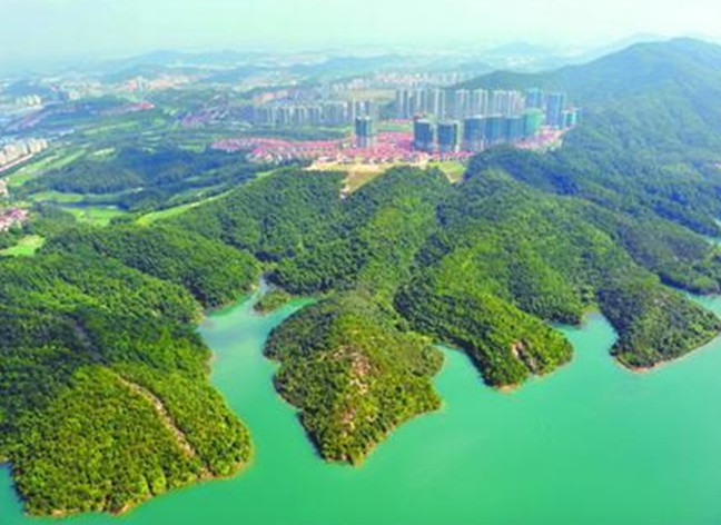 長(zhǎng)江疊翠是中山市新十景之一,指的是長(zhǎng)江水庫(kù)游覽區(qū),這里離中山城區(qū)中心石岐東南九公里,是建設(shè)在著名抗日游擊根據(jù)地五桂山區(qū)北面的以水庫(kù)為中心的游覽區(qū)。水庫(kù)1963年基本建成,它包括里面相連的6條大水坑,7處山梁山埔和一道攔庫(kù)大壩,集水面積三十六 平方公里,庫(kù)容達(dá)五千萬立萬。雄偉的水庫(kù)大壩頂面寬6米多,長(zhǎng)330米。往水庫(kù)區(qū)里望, 莽莽群山,重巒疊嶂,一望無限的松林,郁郁蔥蔥,還有杉樹、樟樹、苦楝…等和許多叫不出名字的樹木。一派生機(jī),濃綠如絨如砌,倒映湖中,就是這里美景"疊翠"風(fēng)韻之所在。