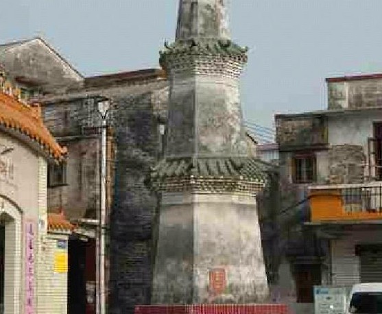 龍瑞塔位于廣東中山市沙溪鎮(zhèn)溪角龍瑞村,建于明代,是鄉(xiāng)民為紀(jì)念溪角祖先而建。相傳宋代時(shí)此處有一塊一人高的石板,稱為企人石,建塔時(shí)把企人石含于塔內(nèi)。該塔為八角攢尖頂,內(nèi)為實(shí)心體,底面周長(zhǎng)12.8米,高5層,約11米,為六角攢尖頂,樓閣式磚結(jié)構(gòu),紅方磚鋪地。底層面積39平方米。第五層窗額鑲嵌有“天章”石匾,門額石匾陽(yáng)刻楷書:“云漢為章”。
