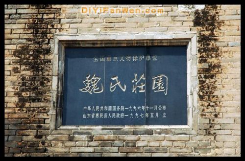 由濟南沿220國道東北而行百余公里,到達惠民縣的魏集。下國道不遠,快要抵著黃河壩堤的地方,就是那謎一樣的魏氏莊園了。這是我國北方僅存的清代城堡式建筑群。那青色磚屋青色的瓦,構成了一幢神秘的歷史深宮。