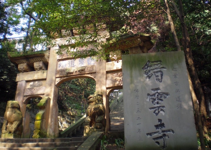 縉云山是具有1500多年歷史的佛教勝地。山中縉云寺,始建于南朝劉宋景平元年(423年),后曾稱“相思寺”、“崇勝寺”、“崇教寺”,受到歷代帝王封賜。寺中自古辦學,名為“縉云書院”。寺內現存有宋太宗誦讀過的24部梵經。寺外石照壁上“豬化龍”浮雕,為六朝文物。另有出土的石刻天王半身殘像,據傳是梁或北周作品。唐高祖李淵(618年)曾親筆題名“禪真宮”,唐大中元年(847年),宣宗皇帝賜寺額為 “相思寺”,系山有相思巖、相思竹、相思鳥之故。唐乾符元年(874年),定濟和尚重建寺廟,971年慧歡禪師主持修葺殿宇。998年,宋真宗將太宗讀過的梵經240卷送到這里,供奉在寺中。宋景德四年,真宗賜名“崇勝寺”。明永樂五年成祖皇帝敕諭“縉云勝景”,明天順元年(1462年)英宗皇帝又踢名“崇教寺”,萬歷三十年神宗皇帝下令改為縉云寺,賜題“迦葉道場”。明末清初,寺毀于火災.傳說是因為當時寺內和尚,橫行四鄰,當地老百姓恨之入骨,趁張獻忠入川時,聚眾上山一把火把寺燒毀,現存的寺廟是清康熙二十二年(1683年)由破空和尚主持修復的。1930年秋,曾任世界佛學苑苑長、中國佛教學會會長、中國佛教整理委員會主任的太虛大師(1889-1947)“游化人川”,得知四川劉湘有“選派漢人入藏”之意,乃建議成立漢藏教理院,以研究漢藏教理,融洽中華民族,發揚漢藏佛學,增進世界文化交流,得到了渝州(今重慶)軍、政、金融界知名人士的大力支持,遂選定縉云寺作校址,推選劉文輝為名譽院長、太虛為院長、何北衡為院護,共同組成漢藏教理院董事會。該院辦學20年,為我國培養了大批佛教人才。當年學生現遍及世界各地,重慶佛教協會會長惟賢法師等均是太虛法師的學生??N云寺漢藏教理院號稱世界佛學苑四大分院之一。寺內大雄寶殿上塑有迦葉古佛,高約2米。兩旁站立帝釋、梵天,都是清代塑像。其外有一匾額,上書“曇花藹瑞”。寺內還有一口大鐵鐘,高約1.60米,底徑1.50米,腰徑0 9米,為清道光二年(1822年)所鑄。山門外,兩棵參天銀杏直向青天,古剎鐘聲與山間松濤相映成趣。寺內的雙柏精舍為方丈居室,兩側禪房與石刻,形成古色古香的意趣。在寺 外,還存有世界佛學苑漢藏教理院碑記及太虛法師和正果法師塔各一座,上有趙樸初和鄧穎超的親筆題字。