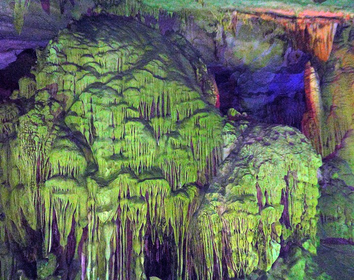 芙蓉洞分三大景區,第一景區以色彩斑斕的高調為主,第二、三景區則以重科學和色調還原自然為主線。洞內比比皆是,一步一景的景觀中主要解說景點30余處,其中在國內外屬特級景點有10余處,尤其是寬15.76米,高21.04米的巨型石瀑布;面積32平方米,水深0.8米,處在生長旺盛期的珊瑚瑤池;長120厘米,周長124厘米的“生命之源”;生長旺盛的石花之王;世界絕無僅有的犬牙晶花石五絕,是世界洞穴景觀的稀世珍品。芙蓉洞是一個大型石灰巖洞穴,全長2400米,洞體高大,版權所有山東聊城聊之旅國際旅行社有限公司,轉載必究!寬高多在30至50米之間,其中輝煌大廳底面積在1.1萬平方米以上。洞內各種次生化學沉積形態(speleothems,即鐘乳石類。芙蓉洞中有碳酸鹽巖和硫酸鹽巖兩類)琳瑯滿目、豐富多彩。其中大多數種類分布之廣泛,質地之純凈,形態之完美,在國內目前的發現中多屬少見。尤其是正在形成中的池中珊瑚狀和犬牙狀方解石晶花,洞壁上各種姿態的卷曲石、方解石和石膏晶花更是國內稀有,世界罕見。各類沉積物所構成的洞內景觀,既玲瓏剔透,又輝煌壯觀。個體華麗精巧,全景燦爛繽紛,令人目不暇接。按規劃現階段開發三大景區,游覽線路全程1846米,主要景點約三十處,其中十多處在國內外均可堪稱最佳景點。 芙蓉洞游覽開發由中國地質學會洞穴研究會在科學調查論證的基礎上,按高起點、高標準要求進行整體規劃設計。因此,游覽芙蓉洞既可獲得大自然藝術與神奇的美好精神享受,又可增長許多有益的洞穴科學知識。