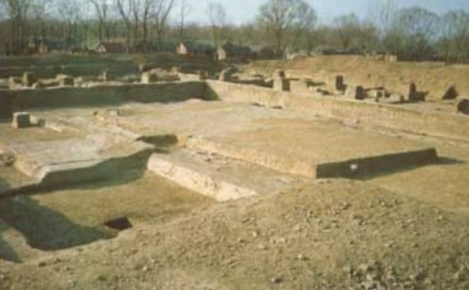 更為典型的是在遺址上,發掘出一座完整的宋代老君殿基址。該址在發掘區的東南部,“亞”字型高臺建筑,東西長30.3米,南北寬14.5米,臺基高0.60米經專家鑒定:該遺址為宋磚砌筑,在散水鋪磚下出土有宋代“祥符元寶”銅錢墊基。其年代與史料記載:宋代大中祥符七年奉敕重建“太清宮”相符。老君殿基址的出土及其他建筑群基址的發現,對于研究道家文化的起源與發展和古代建筑歷史都具有重要的價值。