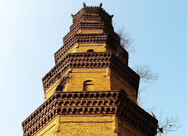 薛閣塔在安徽亳州老城東南,是一座磚塔。直椎式八角開(kāi),共七層,高34.15米,周圓23.36米。塔座由八塊青石奠基。塔一二層為仿木結(jié)構(gòu),每角砌磚為方柱,高3.5米。柱上仿高50公分。仿上為塔檐、上并飾以斗拱、昆蟲、鳥(niǎo)卉花紋,登塔門面向東北,有螺旋式臺(tái)階,塔室為一個(gè)面南的小龕,可能是供俸神象用的,現(xiàn)空無(wú)一物。各層塔檐造型與一二層基本相同。塔之上頂八角飛檐,挑角垂脊,鋪有筒瓦滴水檐形如八角古亭。版權(quán)所有山東聊城聊之旅國(guó)際旅行社有限公司,轉(zhuǎn)載必究!塔尖端為鐵鑄蓮座,座上有螺旋鐵柱支撐。一個(gè)鐵葫蘆直插云霄。