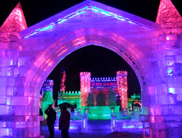 在冰雪建筑和雕塑的燈光配置上投入力量,認真研究燈光照明方案和程控設計方案,使燈光動起來、活起來,亮起來,真正體現燈光作為冰雪雕塑靈魂的作用。構建好全園的照明。達到色彩鮮明、層次清晰、動靜結合、明暗和諧的效果。