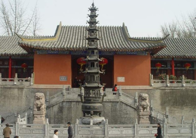 梁武帝時又在臺上建有鐵佛寺。唐大歷年間又重修擴(kuò)建,定名明教院,至明代改為明教寺。后毀于戰(zhàn)火。明教寺,聳立臺上,雄偉壯觀,乃清光緒十一年太平天國遺老袁宏謨云游募化,按原樣重建而得。明教寺現(xiàn)為全國重點(diǎn)寺廟,由佛殿、藏經(jīng)閣、西廂院三部分組成。殿分正殿和后殿,有佛像三十多尊。大雄寶殿飛檐翹角,風(fēng)鈴叮鐺,殿脊高聳一巨大錫葫蘆,銀光閃耀,直刺云天,顯示了我國佛教寺院威嚴(yán)莊重得建筑特色。寺內(nèi)鐘鼓齊鳴,梵音繚繞,充滿了神奇得宗教色彩。