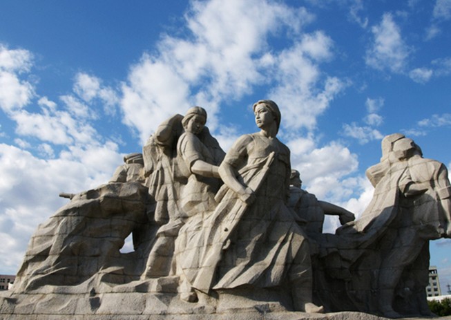 八女投江紀念地位于牡丹江畔的江濱公園。該群雕1988年落成,高13米,長8.8米采用花崗巖石材雕鑿而成,"八女投江"四個大字由全國政協主席鄧穎超生前書寫。站在這碩大的群雕前,無不使人思維翻滾,心潮澎湃,當年八女視死如歸,英勇戰斗的情景又呈現在人們的面前,1938年10月下旬,東北抗聯四、五軍西征婦女團,在指導員冷云帶領下,擔負著掩護大部隊轉移的任務,她們英勇抗擊日軍熊谷部隊的襲擊,在彈盡糧絕的情況下,寧死不屈,最后毅然背著負傷的戰友,投入林口縣境內的兇猛暴烈冰冷刺骨的烏斯渾河,為國捐軀,譜寫了一篇驚天地,泣鬼神的抗日史詩。電影《中華兒女》、《八女投江》都是根據她們的事跡拍攝的。1982年10月在林口烏斯渾河畔 建起了"八女投江紀念碑",上題"八女英烈光照千秋"八個大字,它背負蒼山,河水縈繞,其志銘記述了冷云、楊貴珍、安順福、胡秀芝、郭桂琴、黃桂清、王惠民和李風善八位巾幗的英雄業績。1984年被國家列為二級文物保護單位。牡丹江市江濱公園的八女投江群雕也被批準為省級愛國主義教育基地。1984年籌建,時任全國政協主席鄧穎超為群雕題寫了“八女投江”四個大字。1986年9月7日舉行工程奠基儀式,1988年8月1日落成。時任全國政協副主席、全國婦聯主席的康克清參加了奠基及落成典禮。群雕工程總造價424萬元。其中:民政部撥款73萬元,財政部撥款50萬元,國家城雕組出資16萬元,市財政撥款35萬元,全市人民捐款250萬元。石雕群像由中央美術學院雕塑系設計,四川美術學院雕刻,版權所有山東聊城聊之旅國際旅行社有限公司,轉載必究!四川美院雕塑廠、牡市第三建筑工程公司等20個單位負責底座、雕像、紀念館和廣場的施工任務。群雕坐南朝北,占地面積8 000平方米,高8.8米,長18米,寬6.9米,由花崗巖石雕塑而成。群雕南側建有牡丹江烈士紀念館,陳列面積160平方米,采用單層半地下式建筑。北墻兩側設門,正中在漢白玉石上鐫刻著中共牡丹江市委員會、市人民政府題撰的“八英烈女銘志”。展廳陳列有康克清1986年題詞“八女英靈永存史冊”,王震1990年8月4日題詞“向抗日烈士致敬”,還有周保中、李延祿等人題詩。展廳里展出了八位女烈士的生平簡介、圖片和部份烈士遺物,為全國重點烈士紀念建筑物保護單位和省級愛國主義教育基地。