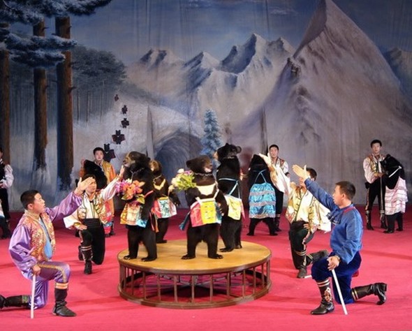 牡丹江黑寶熊樂園:黑龍江黑寶藥業股份有限公司的黑寶熊樂園坐落在張子才嶺北部“山 青、水秀、林幽、石奇”的牡丹江三道關國家級森林公園內,占地10萬平方米,是中國最大的熊科動物飼養、繁育、觀展中心,是中國科學院生命工程系黑龍江省北藥開發科研基地。黑寶熊樂園既是人類保護野生動物的場所,也是人們旅游、休閑的好去處。當您信步走進這座熊類王國的樂園時,映入眼簾的是由800多位黑熊、棕熊、馬來熊組成的熊小姐隊伍,她們將以不同的姿態歡迎您。令您大開眼界、嘆為觀止。熊是一種智商非常高的動物,她的悟性、模仿能力以及與人的親和力都很強,黑寶藥業將黑寶熊樂園經過馴化的幾十頭熊與從世界著名雜技之鄉——吳橋請來的雜技演員組成了黑寶熊小姐藝術團。版權所有山東聊城聊之旅國際旅行社有限公司,轉載必究!經過訓練的熊表演的騎車拉人、打籃球、走鋼絲、掰苞米、晃板、跳欄、拳擊、高空表演等節目與雜技演員的轉毯叼花、滾燈、四人技巧、跳繩、蹬技、溜旱冰等數十個節目以其新穎生動、扣人心弦、趣味無窮打動觀眾,使人流連忘返、贊不絕口,真正形成了“人熊共舞、同臺獻藝”的表演特色。