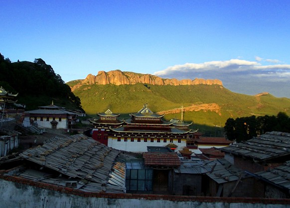 位于甘肅碌曲縣城南90公里處的郎木寺鄉,西傾山支脈郭爾莽梁北麓的白龍江畔,地處甘、青、川三省邊界。郎木寺為藏傳佛教寺院。“郎木”為藏語“仙女”之意,因其山洞中有石巖酷似亭亭玉女,民間謂為仙女所化,故名。寺后林蔭深處有一虎穴,藏語稱“德合倉”,故該寺之名可譯為“虎穴中的仙女”。郎木寺與四川境內的格爾底寺隔白龍江相望,早年曾盛極一時。1969年被毀,現得以逐年恢復。寺前有一山色,形似僧帽,寺東紅色砂礫巖壁高峙,寺西石峰高峻挺拔,版權所有山東聊城聊之旅國際旅行社有限公司,轉載必究!嶙峋嵯峨。山下大片松林蔥蘢茂密。