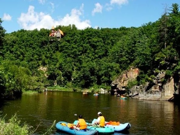 漂流:每年漂流的最好季節(jié)是7上旬到9月上旬。玉兔仙潭是巴蘭河源頭第一漂的終點(diǎn)。玉兔仙潭,水清沙細(xì),清流平緩,到此一游,如浴瑤池,心曠神怡。來到玉兔仙潭風(fēng)景區(qū),不得不嘗試一下水上漂流帶來的獨(dú)特體驗(yàn)。穿上救生衣,乘一支皮舟,順流而下,體驗(yàn)"浪遏飛舟"的感覺。皮舟一會撞向岸邊,一會又撞到別人的皮船,一會又讓伸過來的柳樹枝卡住。兩岸蒼松滴翠,綠蔭蔽日,涼爽宜人。約有20多米寬的河道,河水清流潺潺,山上綠樹蔥蔥,野生植物種類繁多,花卉姹紫嫣紅,千嬌百媚的奇花異草,香氣四溢,沁人心脾。河流蜿蜒曲折、綿綿延伸,真是碧水通幽。河道兩旁長著奇形怪狀的樹,有的伸向河道,擋住人們的視線,像是和人們招手致意;蕩舟河谷、置身激流,觀兩岸青山翠柏,綠意蔥蘢,看河底細(xì)沙游魚,戲水面波峰浪谷,享微風(fēng)柔情輕撫,妙不可言,如入仙境,清爽的河水為你消解盛夏的酷暑。河道九曲十八彎,有的地方水流湍急,有的地方又比較舒緩,流連忘返,樂趣無窮。漂流活動大約3小時(shí),途中可到休閑小站,自費(fèi)品嘗鮮美的烤江魚,感受漁民的純樸。