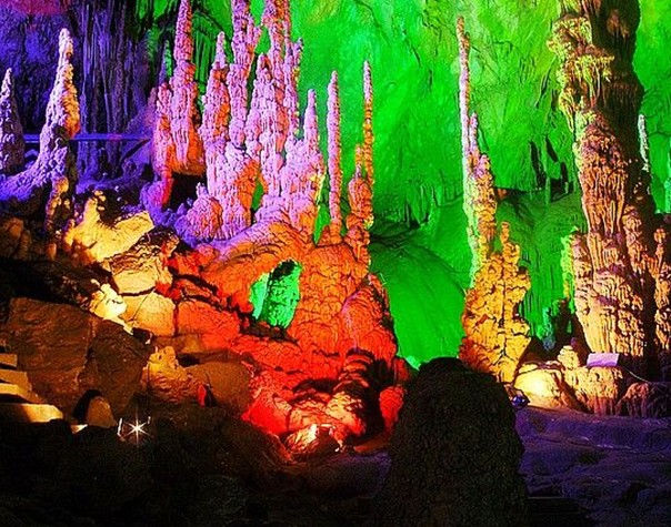 黃山歸來不看岳, 織金洞外無洞天, 瑯嫘勝地瑤池景, 如信天宮在人間。貴州屬于喀斯特巖溶地質地貌,故形成了山中有洞洞中有景的地理征,出現了石林、石溝、石牙、峰林、漏斗、天生橋、巖溶湖、瀑布等地表巖溶形態,又有溶洞、地下河、地下湖、鐘乳石、石柱、石筍、石幔等地下巖溶形態。從而組成了發育完整、類型多樣、造形奇特、宏偉瑰麗的巖溶洞穴系統。畢節織金洞便是這之中的姣姣者。織金洞又名打雞洞,位于織金縣境內。它由11個景區,47個廳堂,150多個景點組成一個天然洞穴美景。洞口是花園式的迎賓廳,千奇百異的花草點綴著"雙獅"、"玉蟾"、"飛來石"等石景,迎接著來自遠方的客人;正午時分,烈日當空,萬道金光從洞頂灑向織金洞,在水蒸氣的繚繞彌漫中彩環重現,陽光下的小水滴恰如一串串晶瑩而透明的珍珠散落人間,其境美不勝收,其意可幻可切。琳瑯滿目的鐘乳石,大的數十丈,小的如手掌,織金洞的銀雨樹,是一種罕見的花狀透明結晶體,從白玉似的托盤中沖天而起達17米,亭亭玉立、珠光寶氣;水晶宮又名雪香宮,宮內的鐘乳石表面皚皚石雪,頂頭冰柱高掛,地上石筍密布,幌如東海龍宮。