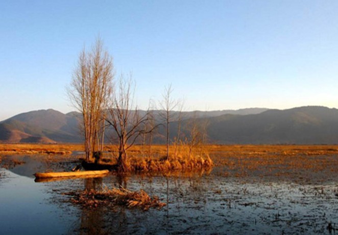 草海是貴州最大的淡水天然湖,是一個典型的高原濕地生態系統,湖的南岸有一個約0.33平方公里的半島,最窄處僅有200米寬的地段與陸地相連,草海湖盆面積45 km2,湖底海拔2170m,平均水深2m,正常水位高程為2171m,相應水面積20 km2。1992年,國務院批準為國家級自然保護區。草海位于貴州西部威寧縣境內。是貴州最大的天然淡水湖,海拔2171.7米,覆蓋面積保持在30平方公里以上,以水草繁茂而得名。草海四面青山環抱,林木茂密。湖中盛產魚蝦、蒲草等水生動植物,棲息著100多種珍奇水鳥,中國特有的高原候鳥黑頸鶴,每年都要在這里越冬。主要保護以黑頸鶴為主的濕地鳥類。草海素有“鳥的王國”之稱,共有鳥類100余種、珍稀鳥類70余種,特別珍稀的鳥類有黑頸鶴、灰鶴、丹頂鶴、黃斑葦雉、黑翅長腳鷸和草鷺,還有大量的大雁和野鴨,是世界人禽共生、和諧相處的十大候鳥活動場地之一,是冬春觀鳥、夏秋避暑的最佳選擇地。草海冬季溫暖,氣候宜人。暮春時節,草海周圍開放著大面積千姿百態、絢麗動人的杜鵑花。秋天的草海最美,湖中的水草在碧水中開出一朵朵、一串串、一片片的黃花、紅花和白花,船行其中,花隨水波浮動,如入仙境。草海的冬天,則是觀賞黑頸鶴等300余種鳥類的最好季節。草海四面青山環抱,林木茂密,水天一色,翠峰鵠立,版權所有山東聊城聊之旅國際旅行社有限公司,轉載必究!草海西部有一孤島叫“陽關山”島上竹籬茅舍,雞犬相聞,湖中白帆點點,波光粼粼,一片寧靜淡泊的世外桃源景象。草海東南水面有六洞橋及望海樓,沿橋煙柳長堤,垂柳依依,長堤東端有寺廟,相傳呂洞賓曾到此一游。草海盛產魚蝦,水禽,蒲草等水生動植物,棲息著珍奇水鳥。其中最多也最著名的有黑頸鶴和野鴨等。這里的氣候濕潤溫和,故一到暮春時節,草海便整個地被千姿百態的杜鵑花覆蓋著。為草海沉寂的大地平添了幾許活力與生機。草海附近的彝族風景迷人,每年端陽節,彝族群眾在這里舉行賽馬,青年男女在蘆笙山歌中翩翩起舞,互傳眉目之歡。