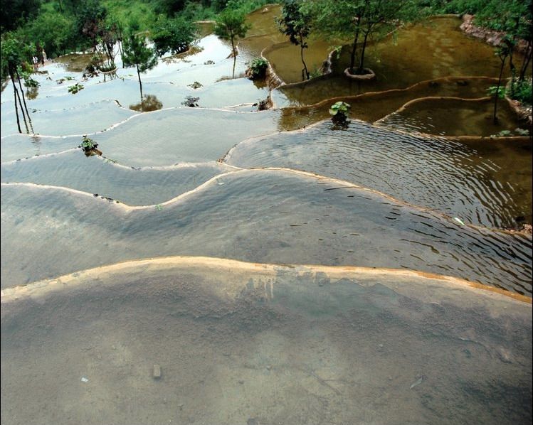 水簾仙宮瀑布下面這一大片大大小小的鈣化池,象一面面鏡子平放在這半坡之上,完全可以和四川的黃龍媲美,這是迄今為止中原地區唯一的鈣化池群。