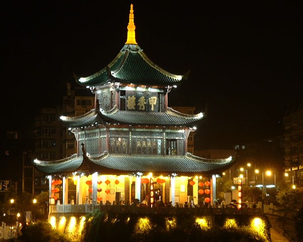 【1】甲秀樓,中國古代名樓,坐落在中國貴州省貴陽市城南的南明河上,以河中一塊巨石為基而建。始建于明,后樓毀重建,改名“來鳳閣”。清代多次重修,并恢復原名。甲秀樓建在城南涵碧潭鰲磯石上。從古到今,甲秀樓歷經六次大規模的修葺和400年的風吹雨打,依然矗立不倒,見證了筑城400年歷史。