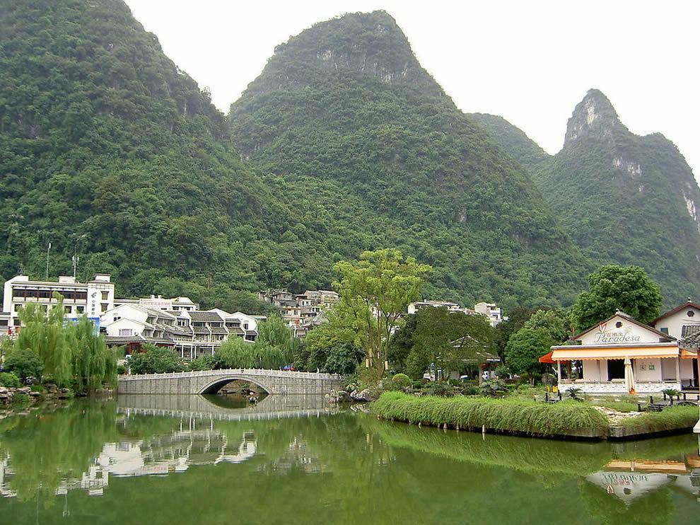 人們騎自行車前往聚龍潭景區聊城旅游網版權所有聊城聊之旅國際旅行社有限公司,轉載必究!,隨后游覽陽朔月亮山。月亮山是陽朔境內的奇景它在高田鄉鳳樓村邊,高達380多米。因為山頂是有一個貫穿的大洞,好像一輪皓月,高而明亮,所以人們叫它明月峰,俗稱月亮山。