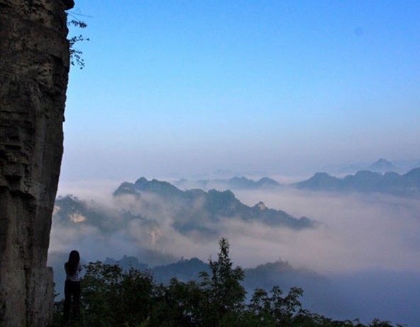 黑沖奇山、云海風光瀏覽區距離縣城24公里,以低山巖容地貌特有的塔狀群峰、裂谷、窄巷和變幻莫測的云景為特色,有轎頂山、黑沖灣、羅漢沖、螞蝗沖四個游覽區,版權所有山東聊城聊之旅國際旅行社有限公司,轉載必究!主要有滴水巖、大絡迦、小絡迦、沖天巖等到41個自然景點和中國工農紅軍第六軍團戰斗遺址。