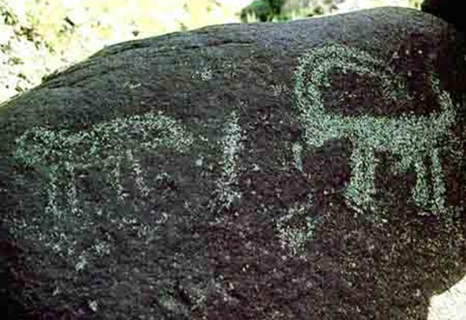 克爾堿巖畫位于托克遜縣庫加依鎮境內,南距鎮政府約4.5千米,巖畫散布在鎮北的克爾堿 溝兩岸,畫面內容主要有:羊、牧羊人、鹿、狗、駱駝以及狩獵、放牧等場面。其中一幅水系圖令人注目。巖畫基巖均為侏羅紀粗砂巖。相傳有位神匠途經此地,眼見四周環境優美,于是整日靜坐在河岸欣賞,后將四周景色逐一刻畫于巖壁上,形成人們今天看到的巖畫。