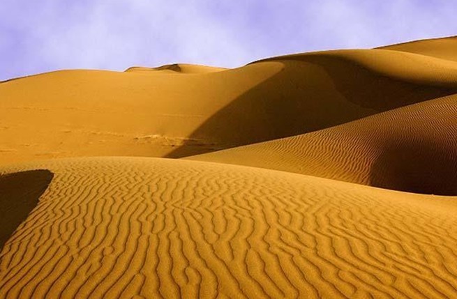 庫姆塔格沙漠具有典型的雅丹、風棱石、風蝕坑等風蝕地貌和格狀沙丘、新月形沙丘、蜂窩狀沙丘、金字塔形沙丘、星狀沙丘和線狀沙丘等沙丘類型。中國風沙地貌學的開拓者們曾根據航片判斷出這里有世界上獨有的“羽毛”狀沙丘。然而,近年來的深入考察卻引起了現代學者關于“羽毛”狀沙丘的激烈爭論。版權所有山東聊城聊之旅國際旅行社有限公司,轉載必究!代表性的觀點有三種:第一,“羽毛”狀沙丘不存在,航片和遙感影像上黑白相間的條紋是由平坦地表上不同物質的返照率引起的。研究者們自行命名一種叫“耙狀”的新沙丘;第二,“羽毛”狀沙丘存在,是一種變形的縱向沙丘。研究者們自行命名一種叫“舌狀”的新沙丘;第三,“羽毛”狀沙丘不存在,是不同空間尺度的兩種沙丘。研究者們識別出風沙地貌分類系統中已有的“Zibar”沙丘。目前,庫姆塔格沙漠“羽毛”狀沙丘仍是一個未解之謎。該沙漠還是國家一級保護動物野生雙峰駝冬春遷徙的主要通道和主要棲息地(目前在該沙漠地帶已設立三個國家級保護區,他們分別是新疆羅布泊野駱駝國家級自然保護區、甘肅安南壩野駱駝國家級自然保護區和甘肅敦煌西湖國家級自然保護區)。鄯善縣庫姆塔格沙漠風景名勝區,風沙地貌、景觀類型齊全。沙漠地形地貌有沙窩地、蜂窩狀沙地、平沙地、波狀沙丘地、魚鱗紋沙坡地、沙漠戈壁混合地等。沙丘輪廓清晰、層次分明;丘脊線平滑流暢,迎風面沙坡似水,背風坡流沙如瀉。站在大漠深處沙山之巔,可靜觀大漠日出的絢麗,目睹夕陽染沙的繽紛,贊嘆“大漠孤煙直,長河落日圓”的壯景。庫姆塔格沙漠的南緣就是唐代連通沙州(敦煌)和西州(吐魯番)的古絲綢之路的另一通道大海道。唐代文書稱:“大海道,右邊出柳中縣(今鄯善魯克沁鎮)界,東南向沙州(敦煌)一千三百六十里。常流沙,行人多迷途。有泉井,咸苦,無草。行者負水擔糧,履繞沙石,往來困弊。”因為環境艱苦、道路險遠,唐代稱庫姆塔格沙漠為“大患鬼魅磧”,大海道也因此而成為絲綢古道中最為神秘和艱辛的險途,至今還蒙著一層神秘的面紗,吸引著無數勇敢的中外探險者。