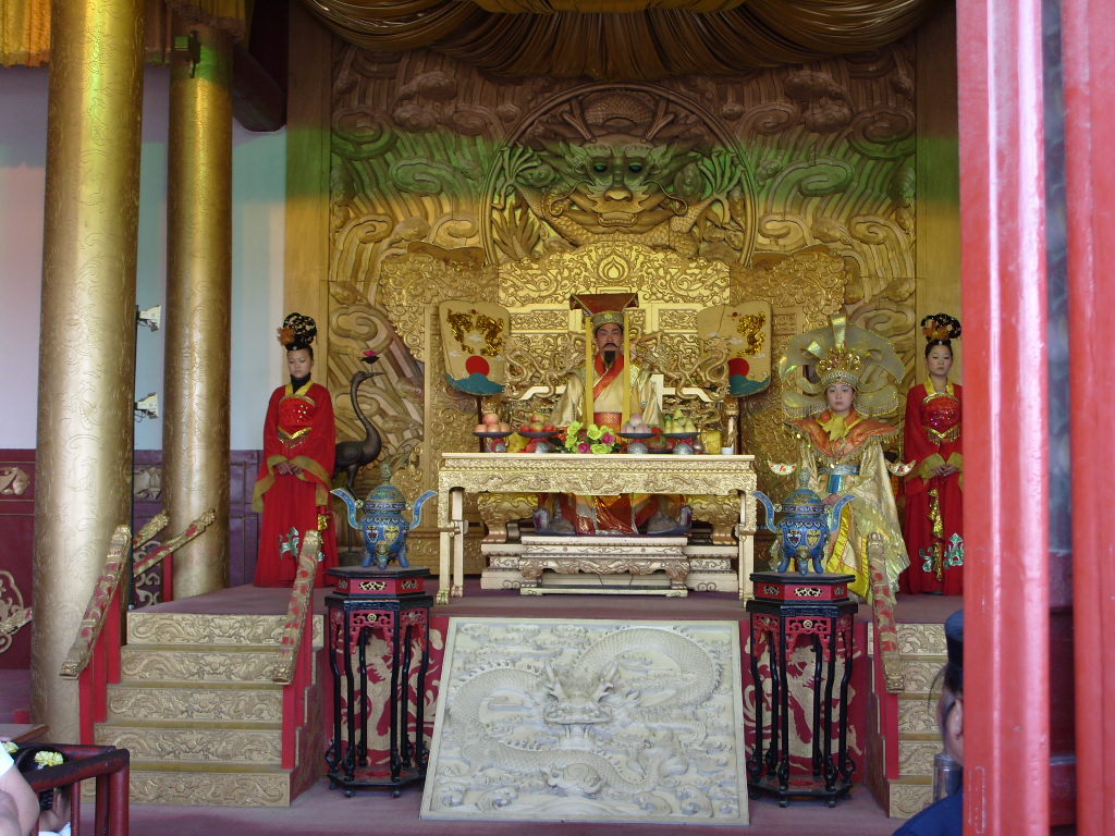 在龍亭臺階下西側有幾間側殿,利用這些側殿搞了一個反映宋代歷史的蠟像館,這是中國的第一座專題蠟像館,占地面積為410平方米。該館將北宋皇朝九帝執(zhí)政時期政治、經濟、文化、外交、科技等方面的重大事件,用九組蠟像表現出來。組蠟像都是根據史實精心設計的,如關于王安石變法的一組蠟像,主角菜三個。端坐在中間御座上的是北宋第六代皇帝宋神宗趙頊。宋神宗身穿一件淺黃色的龍袍,腰圍紅色玉帶,頭微向左方,注視著坐在左側的一位大臣。并凝神傾聽他的講話。這位大臣就是被宋神宗提拔為宰相、版權所有聊城聊之旅國際旅行社有限公司,轉載必究!主張變法的王安石。坐在另一側的則是另一位大臣司馬光,他是反對變法的,這時他正在低頭沉思。這些歷史人物的服飾,包括衣服的顏色,帽子的款式、玉帶的樣式等等,都是經過考據,盡量做到比較符合歷史的實際。而在工藝上,蠟像的膚色、毛發(fā)、眼珠、神態(tài)表情,都比較逼真。