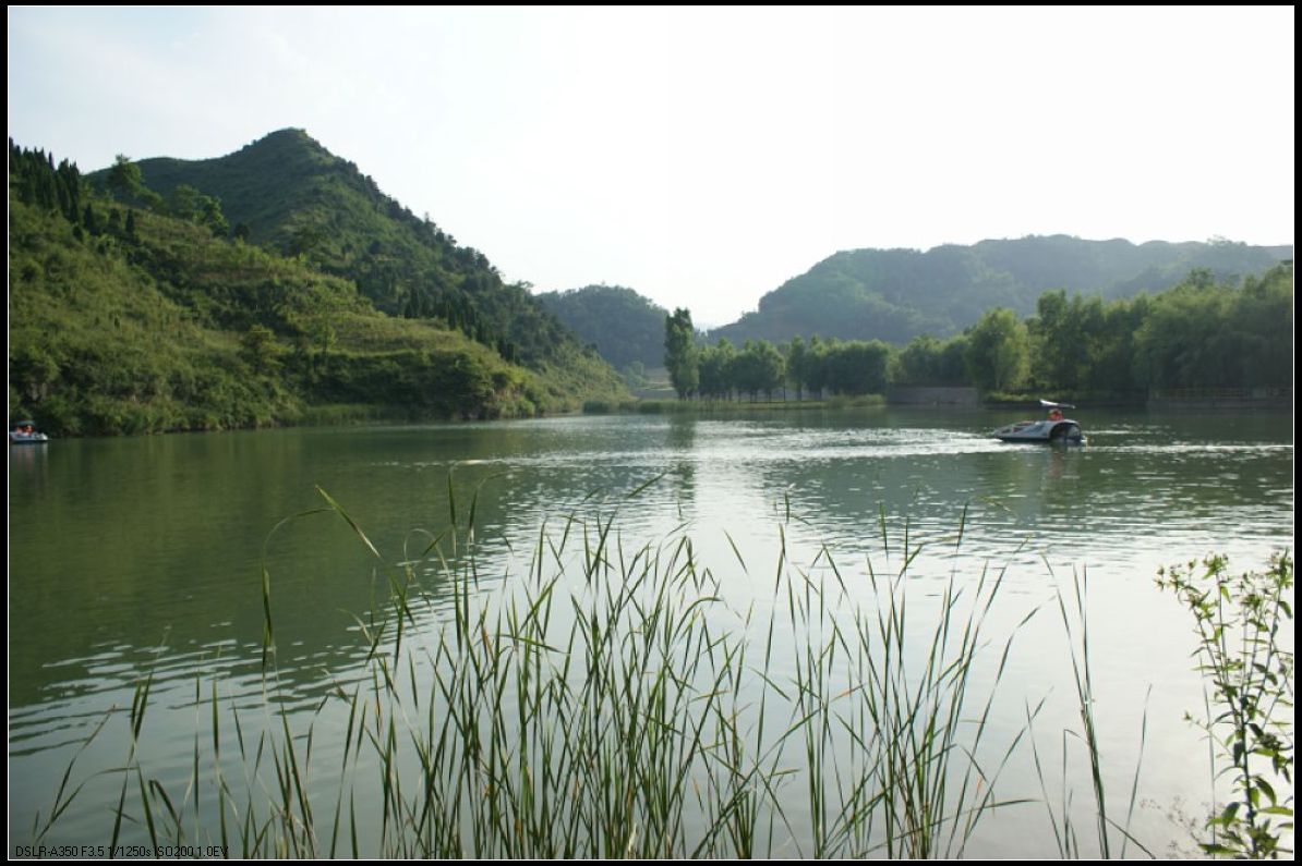 劉秀湖:這個人工湖總面積近3萬平方米,深達8米,請大家注意安全。在不久的將來,湖上游還要修建湖心曲橋,栽植蓮花等,我們的景區還有待進一步開發。夕陽西下,碧波蕩漾,我們就會聯想到范仲淹的詩句“錦鱗游泳,岸芷汀蘭。”湖上泛舟,也別有情趣。