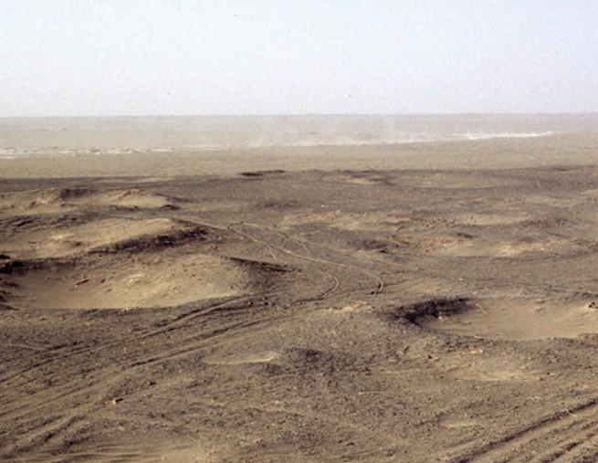 位于四號墓地東約300米處的戈壁平灘上,地表為沙礫層,無植被,四周為村落、道路和農田。該平灘上是蘭干村的一處現代穆斯林墳地,在營造墓穴的過程中觸及了部分古代墓葬,地面上可看到陶片、絲毛織品殘片、殘木器和人骨等。在墳地南部的平灘上,可看到數座古墓塌陷凹坑的遺跡。從地表的遺物遺跡看,版權所有山東聊城聊之旅國際旅行社有限公司,轉載必究!具有扎滾魯克古墓群第二、第三期文化的特征。