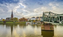 法蘭克福位于美因河右岸,臨近美因河與萊茵河的交匯點,坐落在陶努斯山南面的大平原上。市中心和內(nèi)城在美因河北岸,美因河上眾多的橋梁把內(nèi)城與近郊薩克森豪森地區(qū)連接在一起。