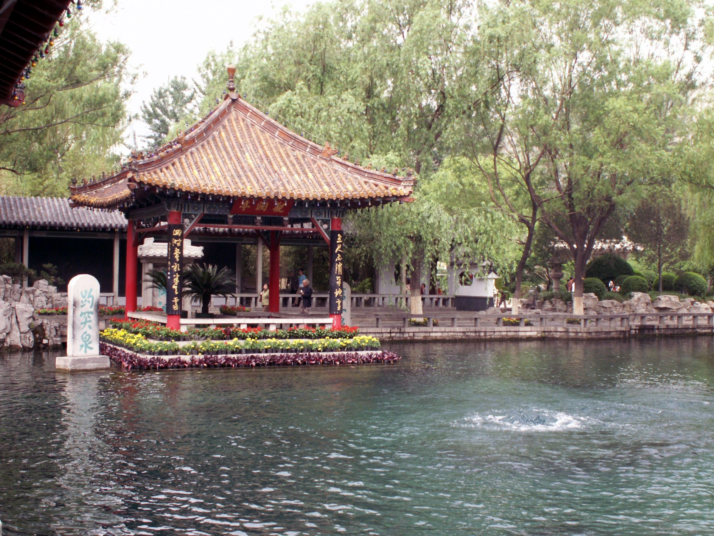 "Bamboo Woods Garden" takes a land of 18 Mu and the garden got its name in the Yuan Dynasty, when the garden was very large and full of bamboo. In the garden lie some famous springs, including Wangshui Spring, Donggao Spring and Baiyun Spring, four pavilions, five bridges and one flower garden. In 1985, the Memorial Hall of Li Kuchan was established here and now the "Bamboo Grove Garden" is attached to the Baotu Spring Park.