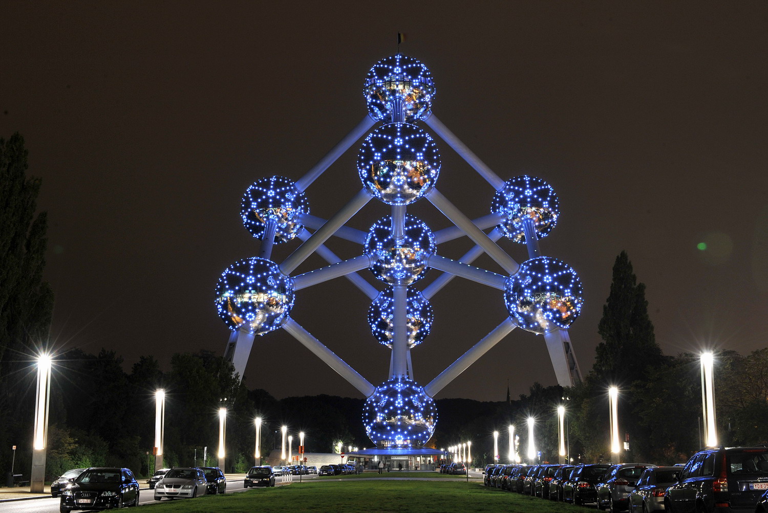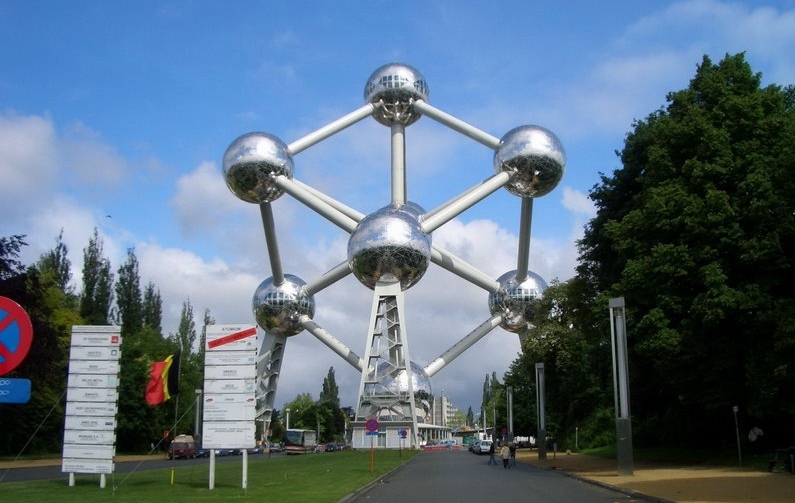 原子球 為比利時1958年在此地的展覽中心舉辦的布魯塞爾博覽會所設計的標志建筑。設計者希望通過這一巨大的建筑表達微小的原子概念,并顯示人類和平利用原子的前景。構思來源于原子結構圖,九個巨大的金屬圓球由粗大的鋼管連接構成一正方體圖案。版權所有聊城聊之旅國際旅行社有限公司,轉載必究!正方體的大小相當于放大了1650億倍的鐵的正方體晶體結果。八個圓球位于正方體的八個角,另一個圓球位于正方體的中心。圓球直徑18米,連接各個球間的鋼管每根長26米,直徑3米??傊?200噸,高102米??沙穗娞莸竭_離地100米高的頂端圓球觀賞布魯塞爾的風景。其他圓球中為各種主題的科技展覽廳。分別陳列有太陽能、和平利用原子能、航天技術、天文等方面的展品,以及有關比利時氣象事業的發展史、衛星氣象、氣象雷達、氣象通訊方面的圖表。
