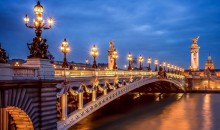 塞納河上架著的橋,據(jù)說共有36座,每座橋的造型都有特點(diǎn),而其中最壯觀最金碧輝煌的是亞歷山大三世橋了。這座橋以其獨(dú)一無二的鋼結(jié)構(gòu)橋拱,將香榭麗舍大街和榮軍院廣場連接起來。建此橋?yàn)閼c祝俄國與法國的結(jié)盟,當(dāng)時(shí)是1900年前后,俄法兩國在百年前還是世仇,拿破侖曾揮師攻打俄國,使莫斯科烈火屠城。100年后兩國一笑泯恩仇,而且意味深長地將橋通向拿破侖墓。大橋兩端四只橋頭柱上鍍金的雕像,由長著翅膀的小愛神托著,它的華麗造型和色彩在巴黎特別顯眼。