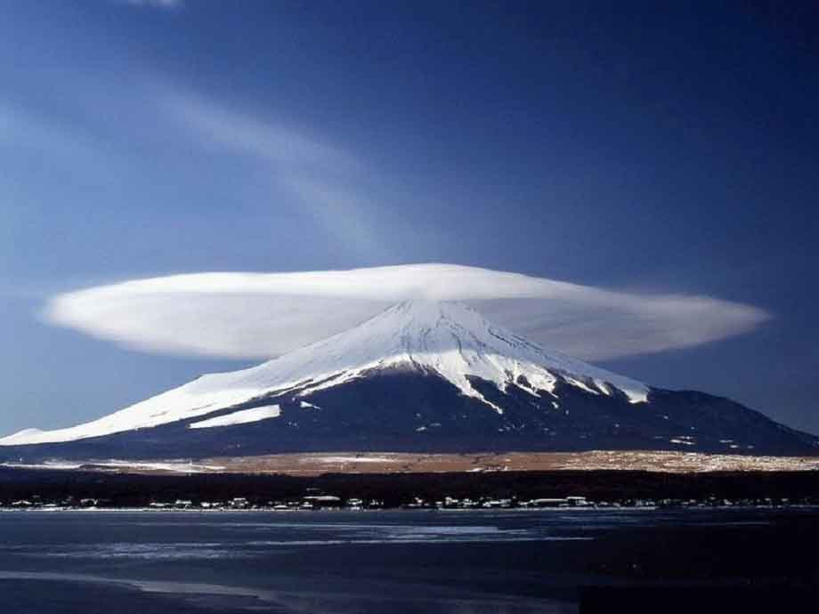 富士山位于山梨縣和靜岡縣境內(nèi),是日本最高山,是日本的象征和日本人的精神支柱,是富士箱根伊豆國立公園內(nèi)最吸引人的景致。它是一座高約3,776米的休眠火山,以勻稱、恬靜的外形著稱于世。冬天覆蓋著寂靜的白雪,每年6月末之前富士山第五級即2,305米以上的部分均覆蓋著皚皚白雪;夏天則一派生機(jī)盎然,7月1日是開始登山的日子,夏季里第一批登山者可以觀賞到高山薔薇和其它高山植物。富士山的夏天十分短暫,8月末的傳統(tǒng)節(jié)日――吉田篝火節(jié)宣告登山季節(jié)的結(jié)束。富士山南坡和北坡的氣候變化截然不同。山頂與山腳的溫差達(dá)20℃,年均溫度為零下6.7℃。山頂?shù)臍鈮簝H為山腳的三分之二。