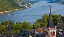 萊茵河是西歐第一大河,發源于瑞士境內的阿爾卑斯山北麓,西北流經列支敦士登、奧地利、法國、德國和荷蘭,最后在鹿特丹附近注入北海。