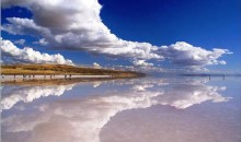 烏尤尼鹽沼在玻利維亞波托西省西部高原內,海拔3,656米(11,995英尺),長150公里,寬130公里,面積9,065平方公里,為世界最大的鹽層覆蓋的荒原,有“天空之鏡”的美稱。