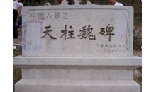 天柱山魏碑位于平度大澤山天柱山南,又稱天柱山摩崖石刻,為國家重點文物保護單位。碑文刻在一塊天然巨石上,高3.2米,寬1.5米,陰文20行,每行40至50字不等,共計881個字,碑文1400余年至今仍清晰可辨。該碑是北魏永平四年(511)光州刺史鄭道昭所書鐫,碑文記述了其父持節將軍兗州刺史南陽公鄭羲的生平事跡和著述。
