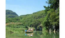 陽春玉溪三洞全長3公里,均可坐船瀏覽。第二洞長330米,水深2-5米,水面寬20-30米,河水清澈如玉,水中多生長鯉魚。洞中景物豐富,尤以“三變石”為趣,詩人張永枚曰:“遠(yuǎn)似漁翁釣清流, 近如獅子滾繡球,忽變犀牛望明月,一石三景迷輕舟”。第一洞頂?shù)摹盎使凇笔崴苹使冢稳嗽诖想S即可拍攝一幅頭戴皇冠的照片。
