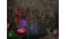 位于陽春市春灣景區(qū)內(nèi),巖洞全長1400米,龍泉溪水清澈,洞如長廊形,景物鬼斧神工、玲瓏剔透,有如龍宮之物。巖洞全程分四段:首段"迎賓廊","鐘乳寶塔"、"彩旗彩帶"招展,"石鼓"咚咚,"龍王水族"栩栩如生;次段是"龍王殿",兩側(cè)玉乳玲瓏,"龍宮浮雕"、"宮壁繡錦"惟妙惟肖;第三段為"聚寶庫",庫藏"鎮(zhèn)宮寶塔"、"定海神針"、"金玉龍床";第四段為"龍舟",其間石筍石幔琳瑯滿目。