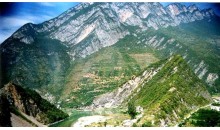 果子溝全長28公里,沿著烏─伊公路的大致走向,就是新疆古絲綢之路的北道。松樹頭,是果子溝的絕頂之處,北下直達賽里木湖畔,南下直入果子溝峽谷。賽里木湖,亦稱三臺海子,與果子溝唇齒相依,亦為新疆名勝之一。由松樹頭南下二臺林場,山路盤旋崎嶇,一落幽谷,是果子溝的險峻之處。落谷傍山,有一高山瀑布凌 空奔瀉而下,狀如白練懸空,壯觀異常。