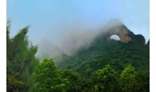 月亮山位于位于廣西壯族自治區(qū)桂林市陽朔縣十里畫廊景區(qū)末端。這里的風(fēng)光古樸素雅、恬靜安逸。山頭上有一個(gè)天然的大石拱,兩面貫通,遠(yuǎn)看酷似天上明月高掛。從不同的角度變換觀看,此洞形狀也不斷變化。