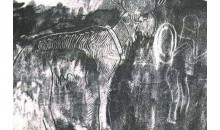 盧山巖畫位于海西州天峻縣江河鄉盧山山丘上,此距江河鄉政府約8公里。山丘位于江河右岸,海拔3800米,相對高度約40米。山丘南部地勢開闊,水草豐美,巖畫散布于山丘,在南山坡上有平面的30多塊花崗閃長粉巖上。單獨的、不相連的有面的巖石,即為一區,共31區。最大的為第一區,巖畫約30平方米,畫面約20平方米,上面有158個個體形象。最小的巖畫僅數厘米,其畫面僅一動物。畫面描繪的主要內容有動物(主要以牛、馬、鹿、鷹、豹子、狗為主,牛最多,鹿次之)、狩獵、戰爭、生殖及藏文字等