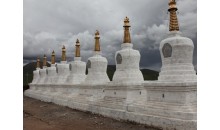位于青藏公路當雄至那曲約三分之一段路旁,蒼茫的大草原上兀立這一組塔群使草原又帶上了幾分神秘悲壯色彩。據傳當年格薩爾王曾率兵在這里馳騁征戰,他旗下的一名大將夏巴戰死于此。為表彰夏巴的功勛,格薩爾修筑八塔安葬夏巴。