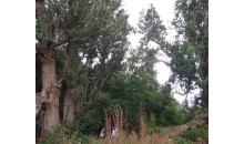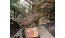 阿克蘇向北,過溫宿縣城后,再向西北行60公里,穿越一大片戈壁灘,一個崗巒起伏的小綠洲便展現面前。這個小綠洲,不是處在地勢低洼處,而是位于坡度平緩的崗阜上,海拔為1700米左右,面積僅0.4平方公里,但卻是郁郁蔥蔥,濃蔭覆蓋,流水潺潺,蜂飛蝶舞,堪稱人間仙景。當地稱它為“怪樹園”。被稱之為“圣水泉”的一汪清泉在綠洲頂部,涓涓細流,滋潤著這塊綠洲。