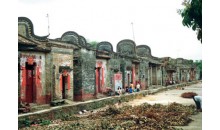 村內民居均建于明末清初,保存完好。全村占地10000平方米,水塘面積6000平方米。依山面水,村前為半月形風水塘、胸圍墻、門樓、禾坪(曬谷場)、街前路,縱向依次排列祠堂、書房、村屋,最后是雕樓、后山及山林綠化。共55棟磚、木、石結構民居。排列有序,一排五間,整齊劃一。石板鋪路,有排水溝。